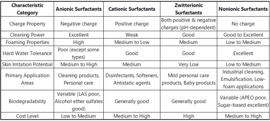 ( Comparison of Surfactant Types and Selection Guidelines)